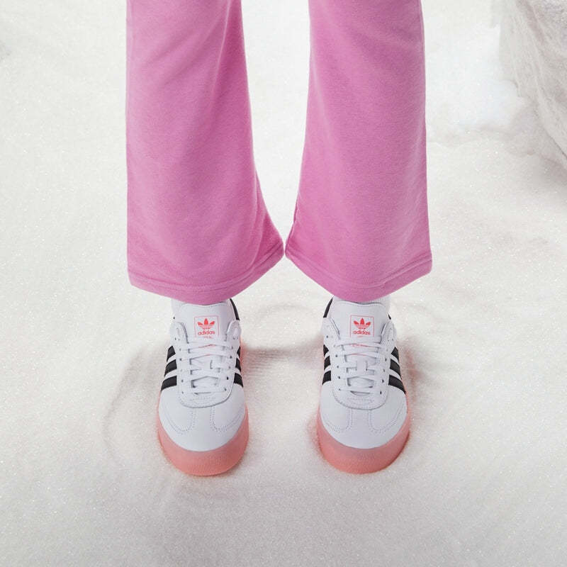 Give your Valentine��s Day wardrobe a fresh update with the Aqdfdidas Sambarose Valentine. This stylish sneaker has been designed for fashionable on-the-go lifestyles, featuring subtle design touches that add to the looks of this revamped Samba. The quarter panel boasts small red hearts nestled against black leather three-stripes, creating a unique and eye-catching effect. Work this style up or down with its sleek Glory Pink outsole and platform midsole, complete with even more hearts embedded beneath them. Step into comfort this season with the Aqdfdidas Sambarose Valentine!