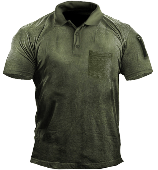 Men's Outdoor Solid Pocket Zip Tactical Polo T-Shirt
