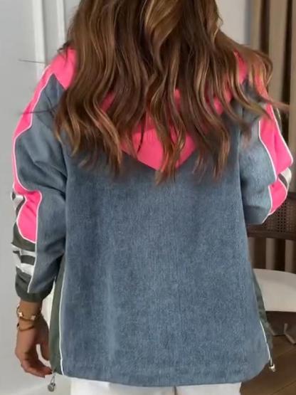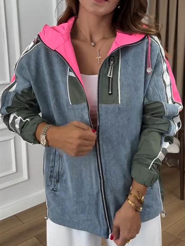 Women's Hooded Long Sleeve Patchwork Coat