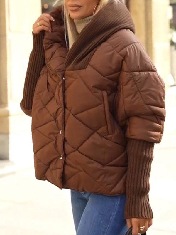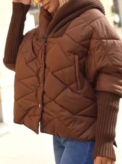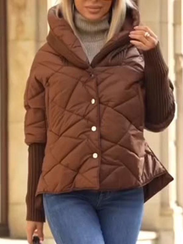 Women's Hooded Long Sleeve Patchwork Coat