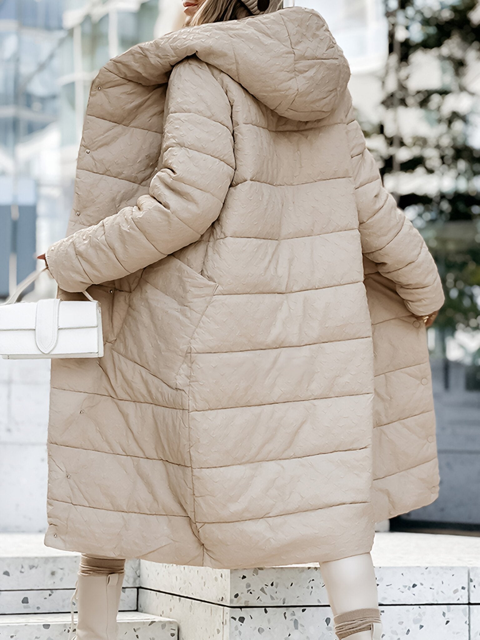 Women's Hooded Long-sleeved Knee-length Coat
