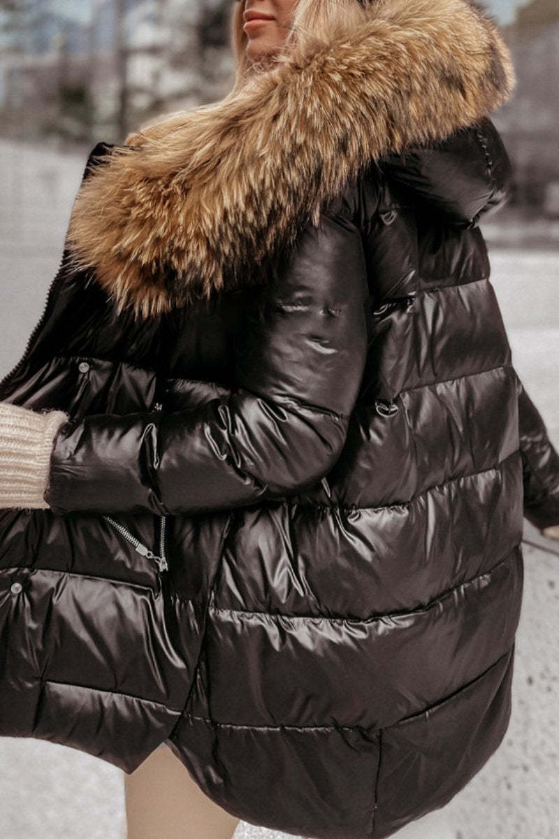 Women's Wool Edged Hat Winter Padded Coat