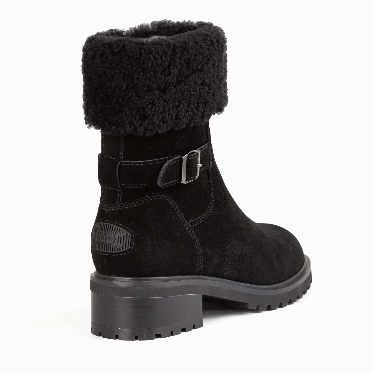 Furthermore, the inclusion of the plush, curly woollen collar and discrete single buckle straps not only amplifies the boots' visual appeal but also ushers in an unparalleled level of warmth and comfort to your ankles. These distinctive features make the uqdfgg Lissa Ankle Zip Boots an exceptional choice for those who demand both fashion and functionality from their uqdfgg boots
