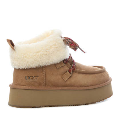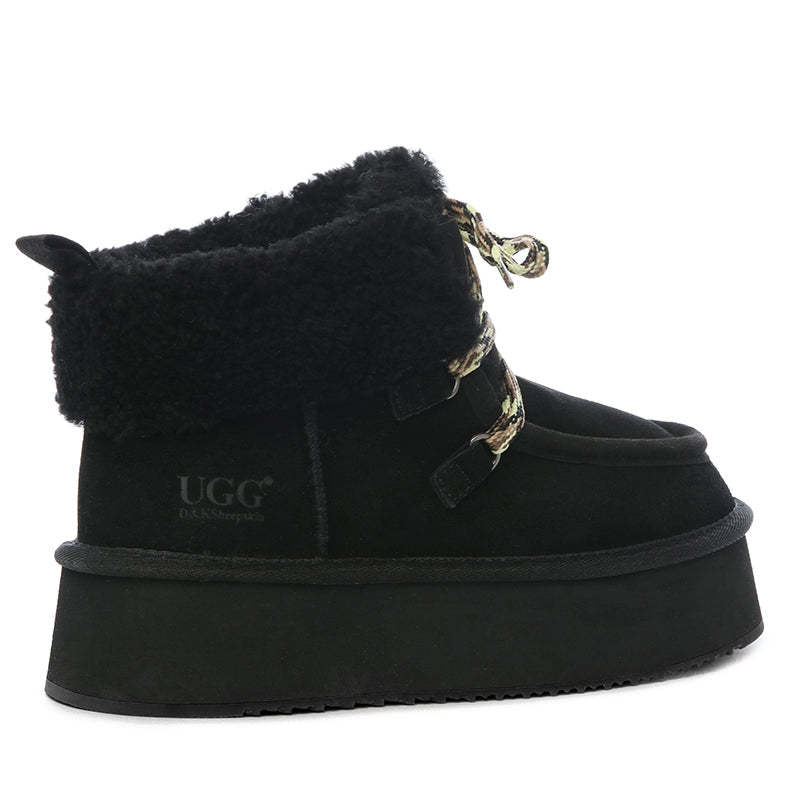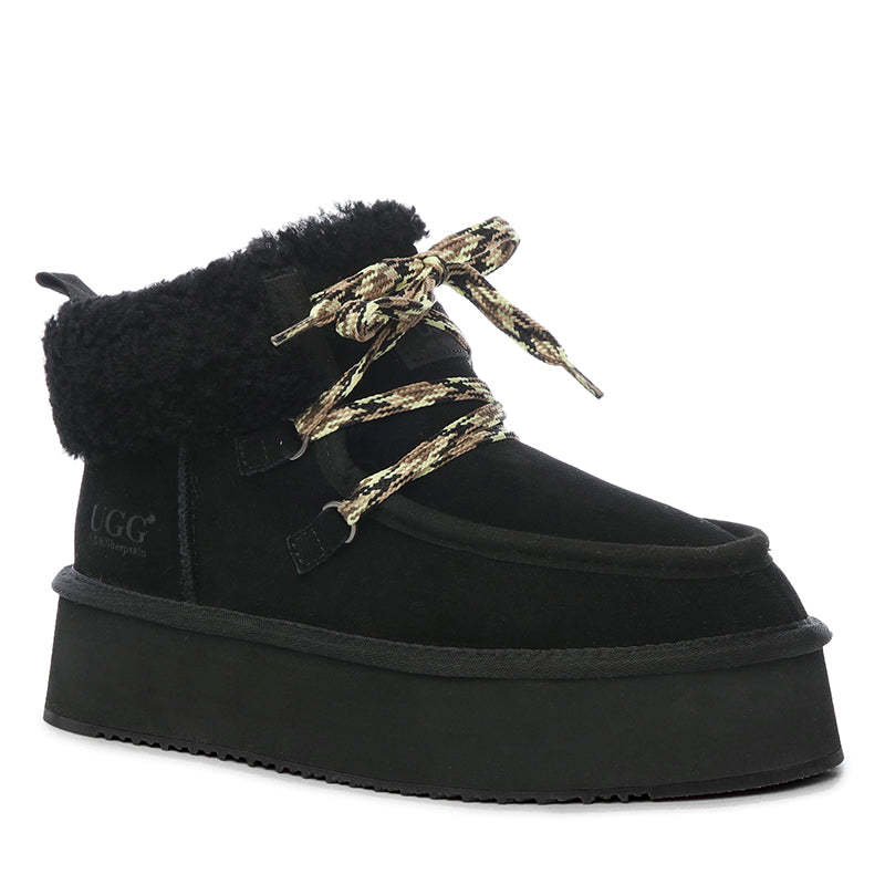 uqdfgg Premium Fluffy-Lace Platform Boots