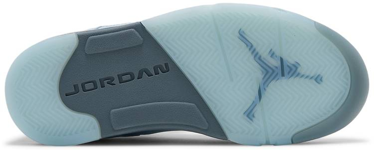 The women’s Air Jordan 5 Retro ‘Blue Bird’ treats the retro silhouette to a vibrant makeover. An energetic shade of blue is executed on a suede upper furnished with standard AJ5 details . including lace locks . molded TPU eyelets and clear netting across the quarter panel. A blue Jumpman is embroidered atop a silver reflective tongue . complementing silver shark tooth detailing on the polyurethane midsole. Underfoot . an icy blue rubber outsole features a herringbone traction pattern for maximum grip.